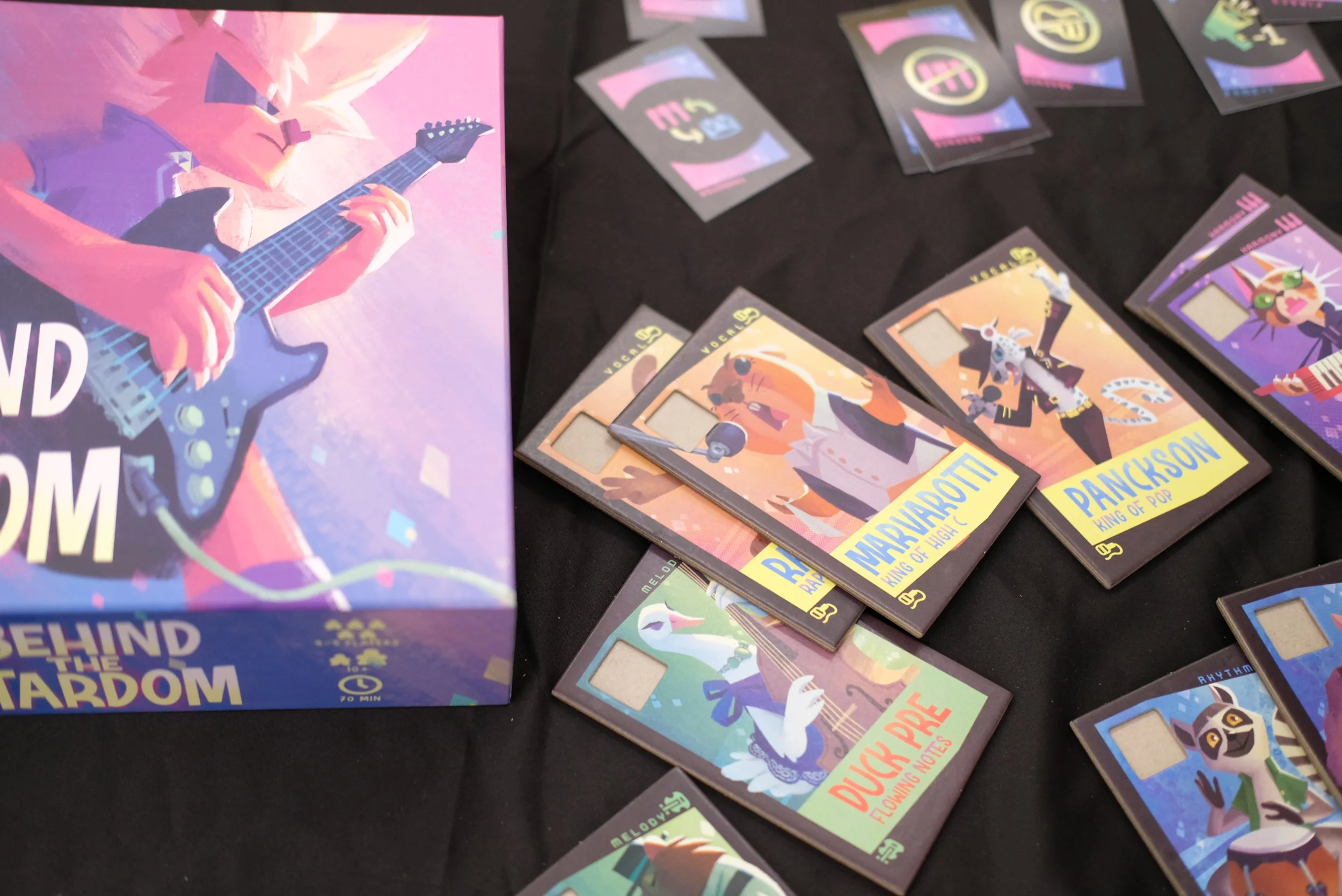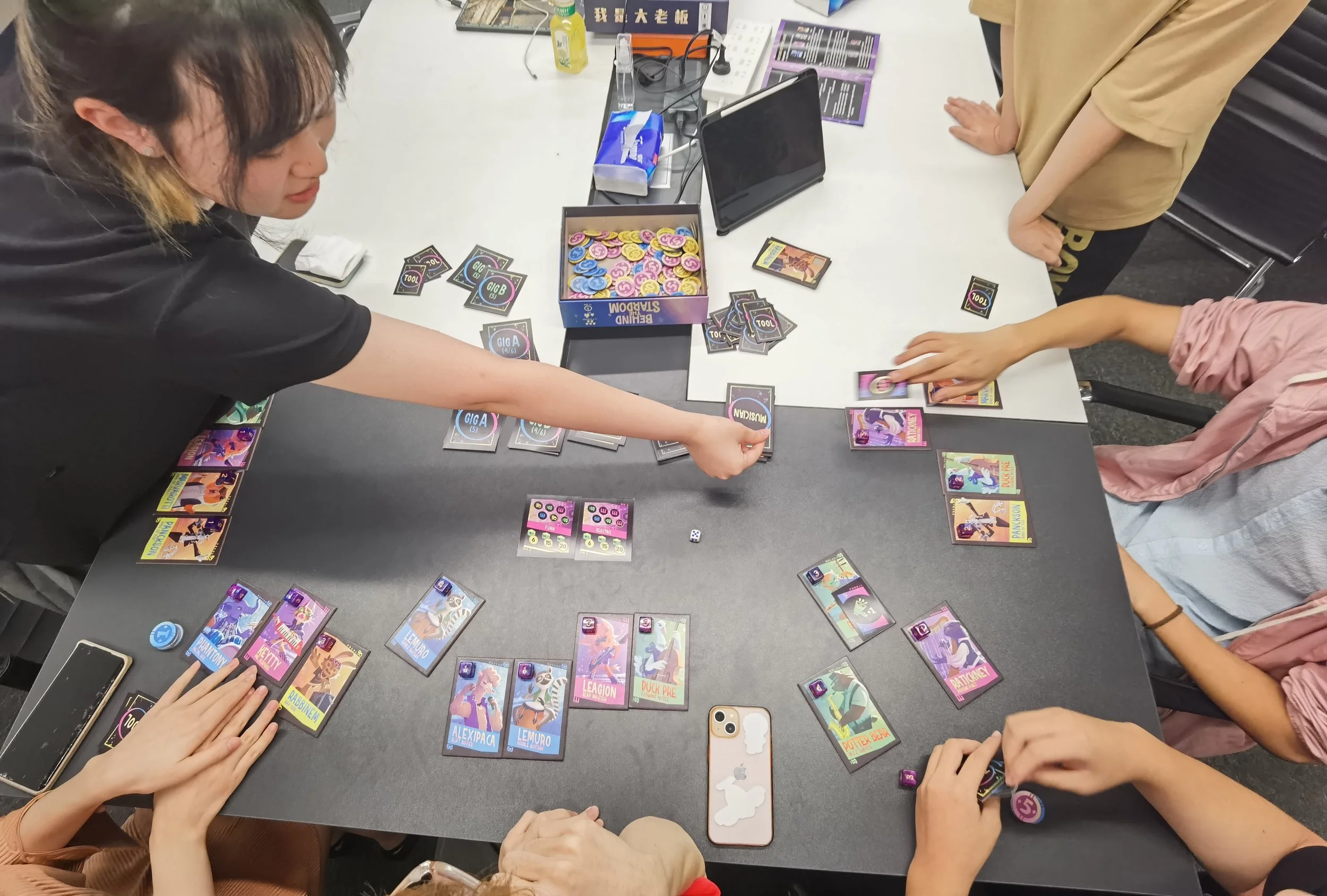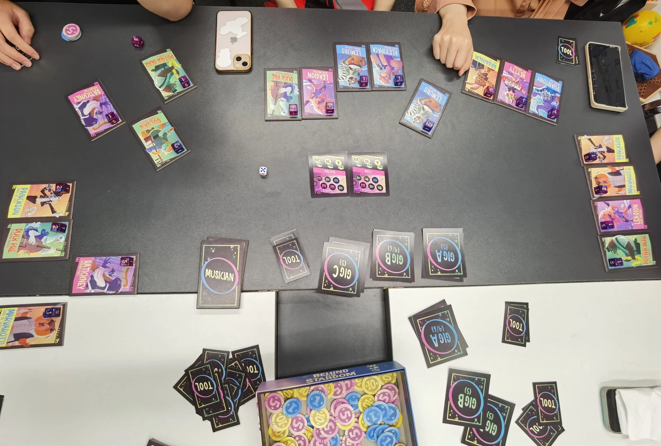 Behind the Stardom is a multiplayer negotiation board game. Players each assume the role of a cunning band manager, cultivating musicians and earning remuneration through bidding for musicians and negotiating performance collaborations. To become the wealthiest manager, players must learn to outwardly embrace cooperation, while secretly seize every opportunity to increase their relative gains.