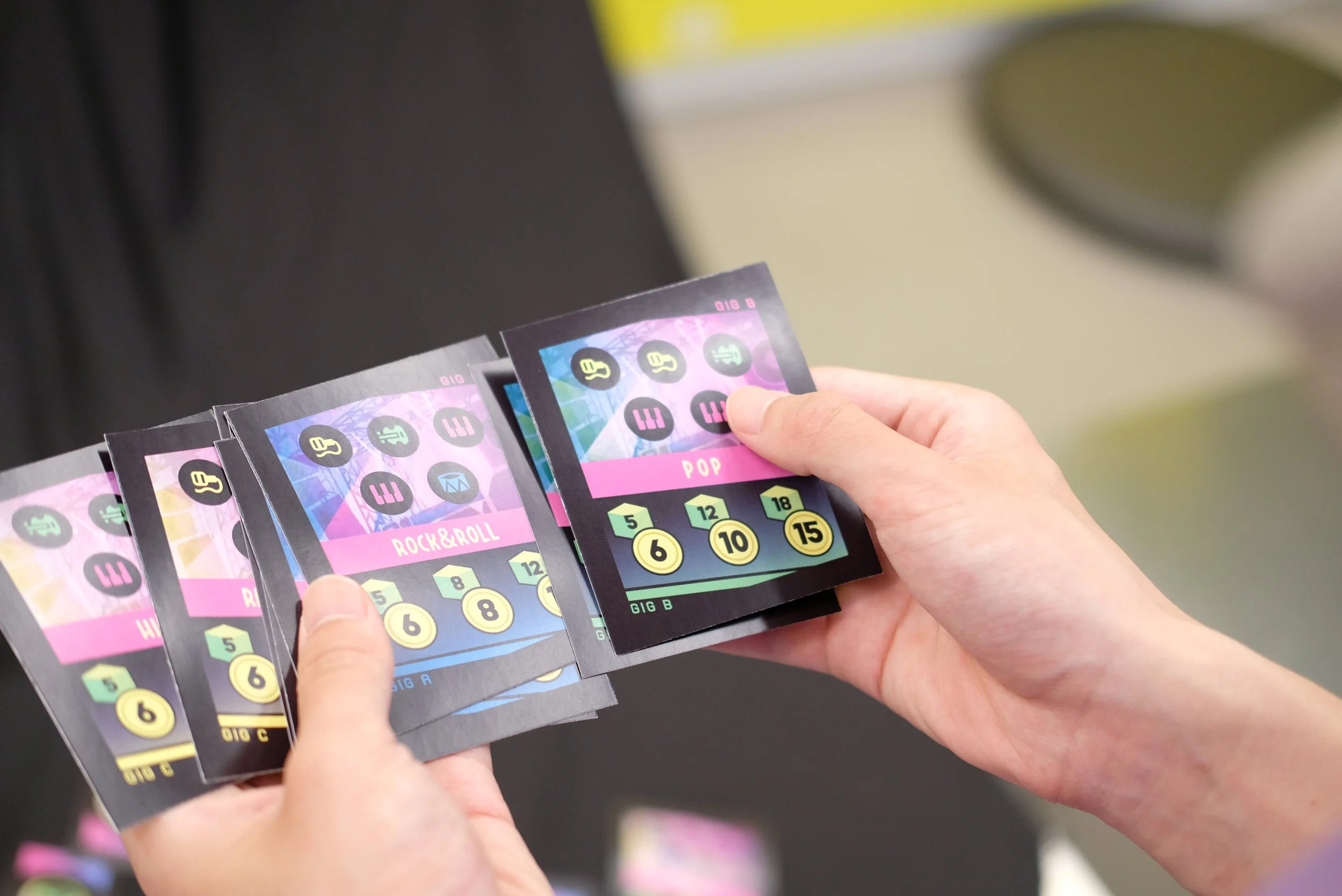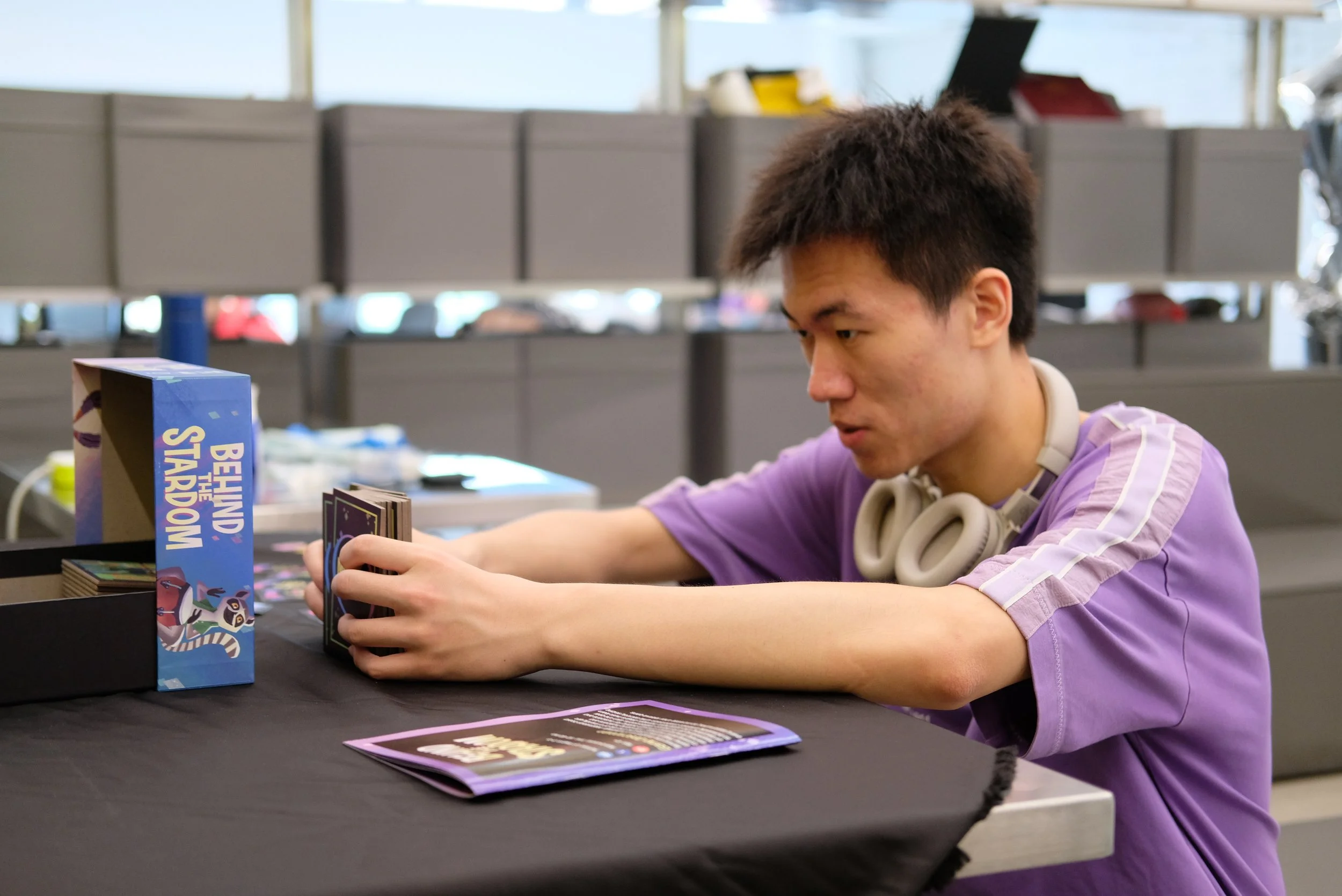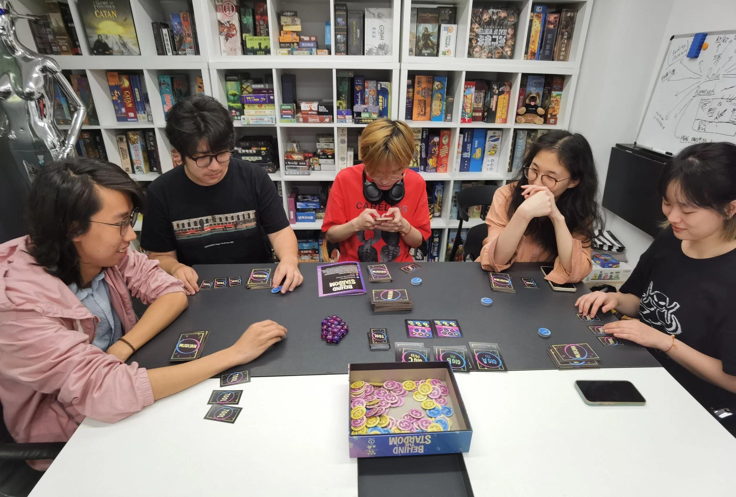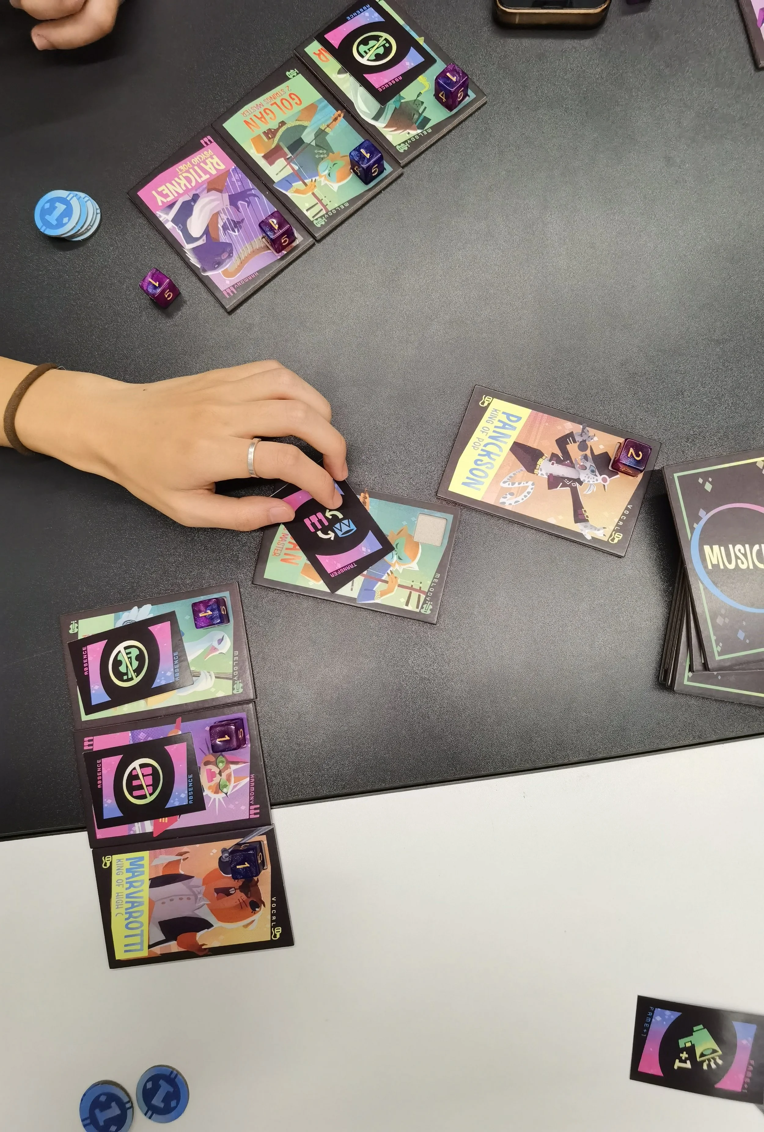 Behind the Stardom is a multiplayer negotiation board game. Players each assume the role of a cunning band manager, cultivating musicians and earning remuneration through bidding for musicians and negotiating performance collaborations. To become the wealthiest manager, players must learn to outwardly embrace cooperation, while secretly seize every opportunity to increase their relative gains.